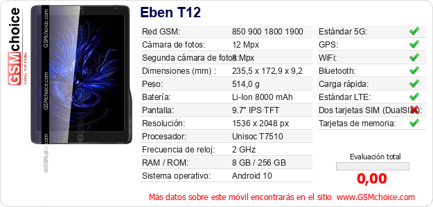 Datos del móvil Eben T12 en tu página