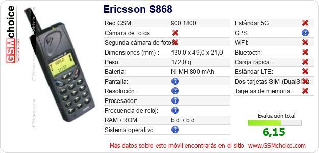 Datos del móvil Ericsson S868 en tu página