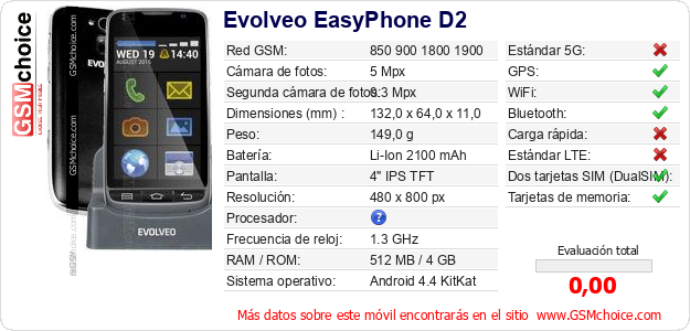 Datos del móvil Evolveo EasyPhone D2 en tu página