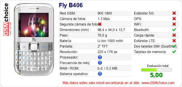 Datos del móvil Fly B406 en tu página