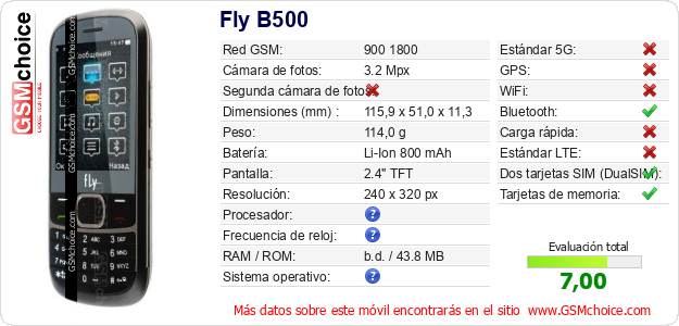 Datos del móvil Fly B500 en tu página