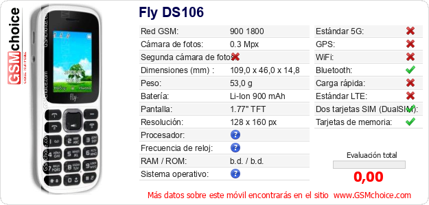 Datos del móvil Fly DS106 en tu página
