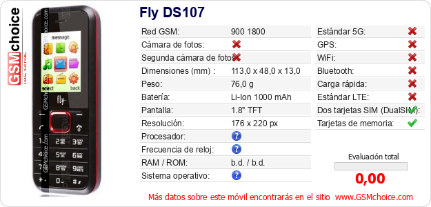 Datos del móvil Fly DS107 en tu página