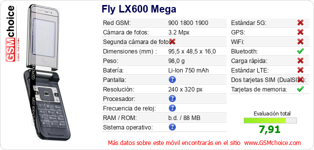 Datos del móvil Fly LX600 Mega en tu página