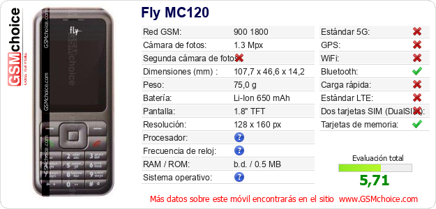 Datos del móvil Fly MC120 en tu página
