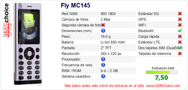 Datos del móvil Fly MC145 en tu página