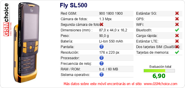 Datos del móvil Fly SL500 en tu página
