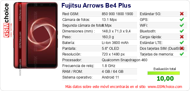 Datos del móvil Fujitsu Arrows Be4 Plus en tu página