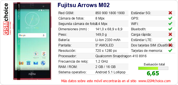 Datos del móvil Fujitsu Arrows M02 en tu página
