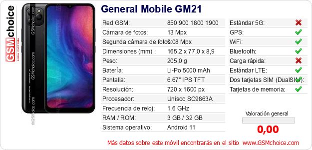 Datos del móvil General Mobile GM21 en tu página