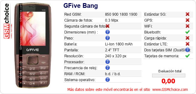 Datos del móvil GFive Bang en tu página