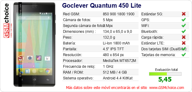 Datos del móvil Goclever Quantum 450 Lite en tu página