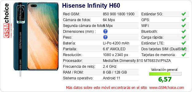 Datos del móvil Hisense Infinity H60 en tu página