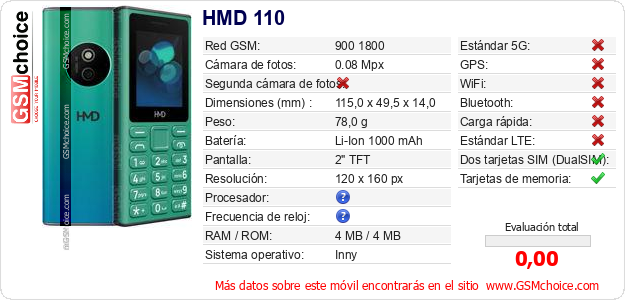 Datos del móvil HMD 110 en tu página