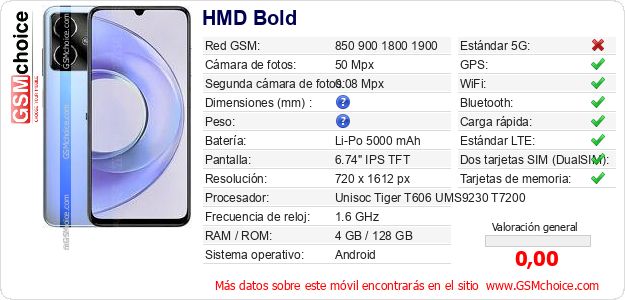 Datos del móvil HMD Bold en tu página