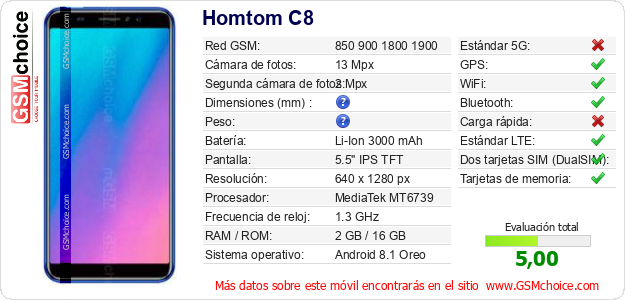 Datos del móvil Homtom C8 en tu página