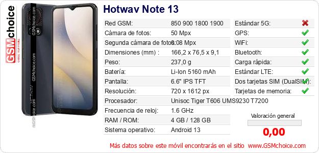 Datos del móvil Hotwav Note 13 en tu página