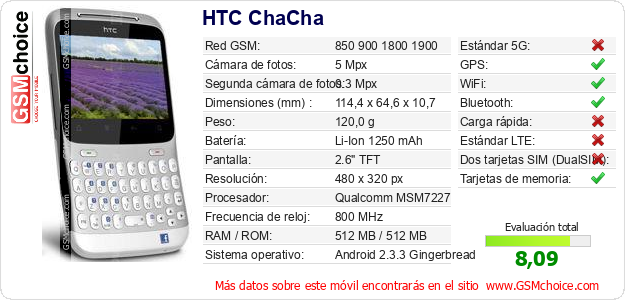 Datos del móvil HTC ChaCha en tu página