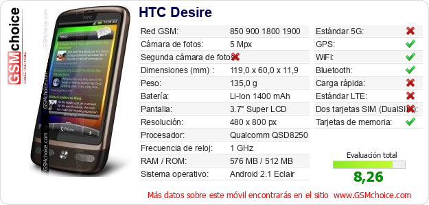 Datos del móvil HTC Desire en tu página