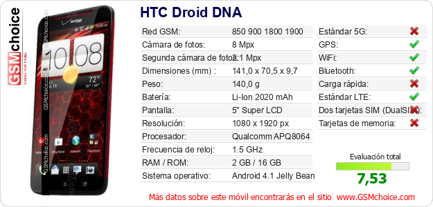 Datos del móvil HTC Droid DNA en tu página
