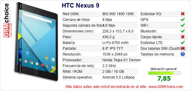 Datos del móvil HTC Nexus 9 en tu página