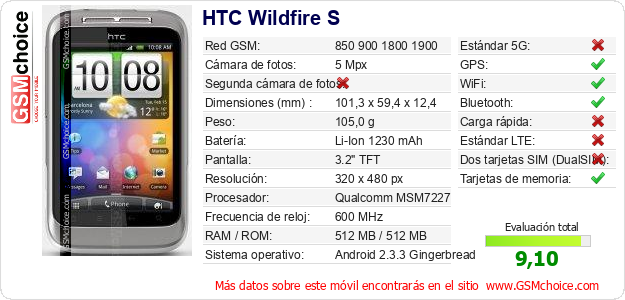 Datos del móvil HTC Wildfire S en tu página