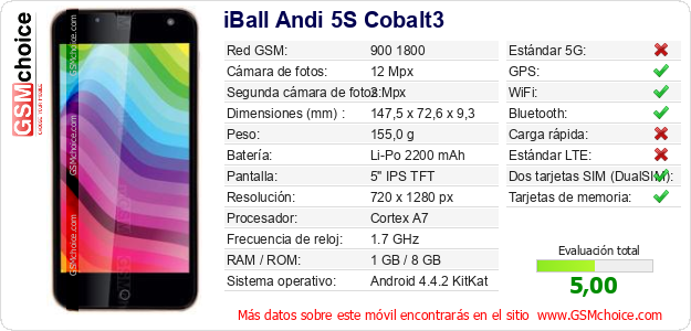 Datos del móvil iBall Andi 5S Cobalt3 en tu página