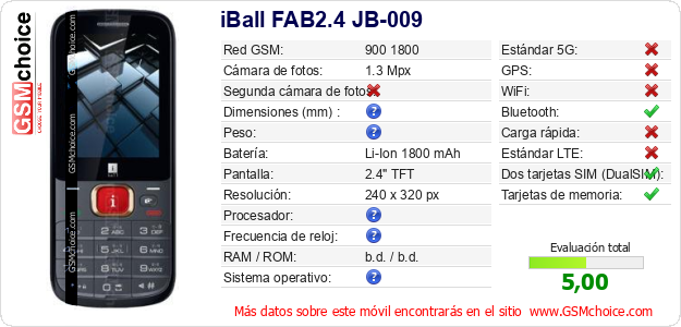 Datos del móvil iBall FAB2.4 JB-009 en tu página