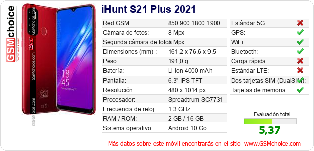Datos del móvil iHunt S21 Plus 2021 en tu página