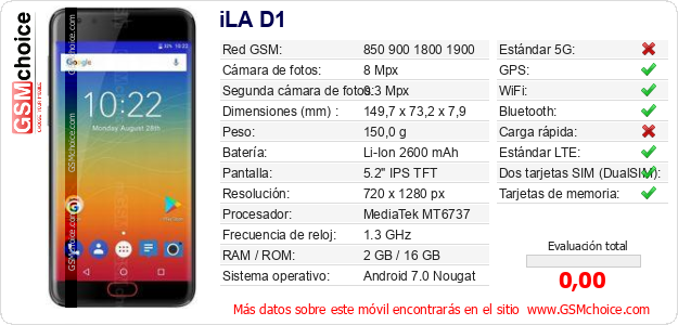 Datos del móvil iLA D1 en tu página