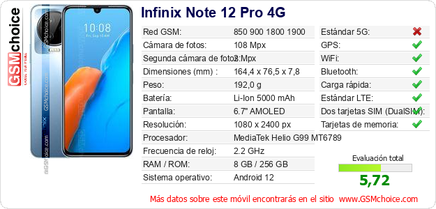 Datos del móvil Infinix Note 12 Pro 4G en tu página