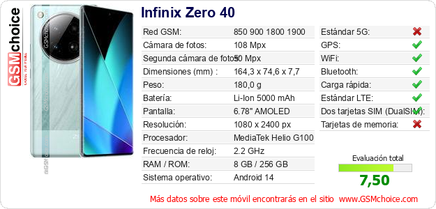 Datos del móvil Infinix Zero 40 en tu página