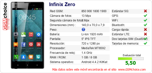 Datos del móvil Infinix Zero en tu página