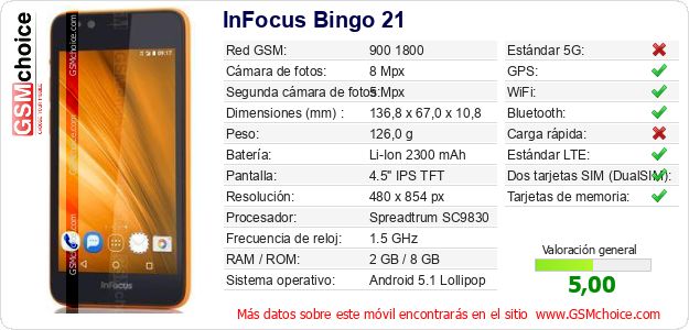 Datos del móvil InFocus Bingo 21 en tu página
