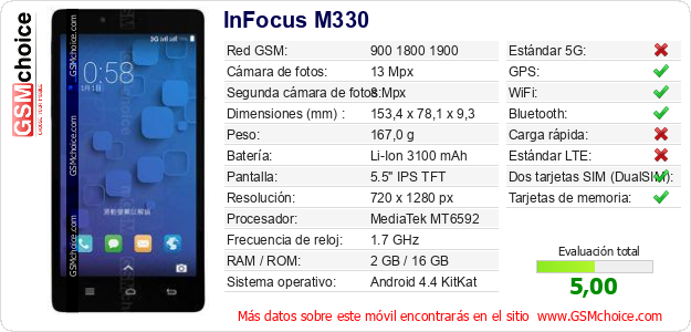 Datos del móvil InFocus M330 en tu página