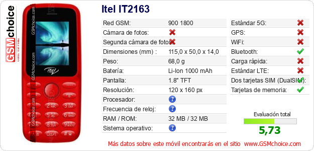 Datos del móvil Itel IT2163 en tu página