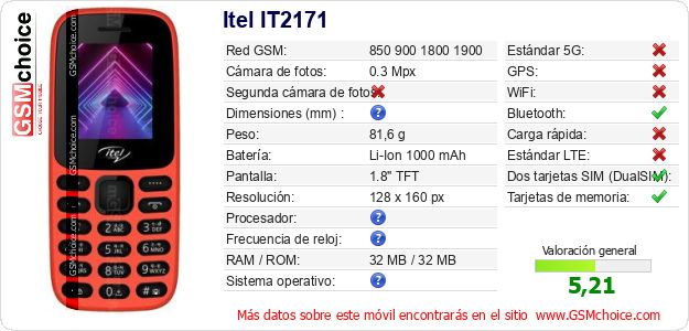 Datos del móvil Itel IT2171 en tu página