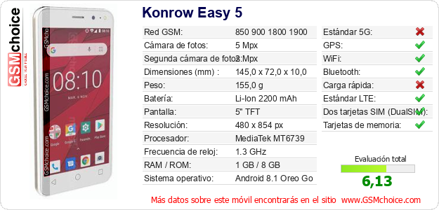 Datos del móvil Konrow Easy 5 en tu página
