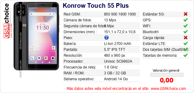 Datos del móvil Konrow Touch 55 Plus en tu página