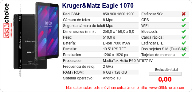 Datos del móvil Kruger&Matz Eagle 1070 en tu página