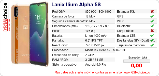 Datos del móvil Lanix Ilium Alpha 5S en tu página