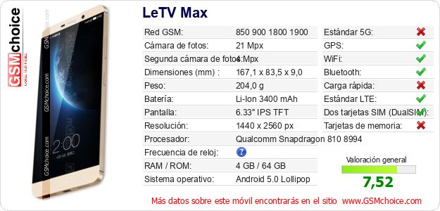 Datos del móvil LeTV Max en tu página