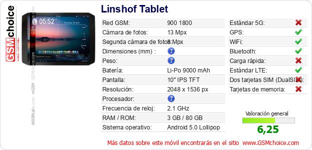 Datos del móvil Linshof Tablet en tu página