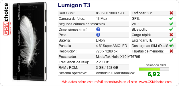 Datos del móvil Lumigon T3 en tu página