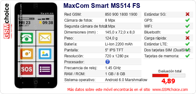 Datos del móvil MaxCom Smart MS514 FS en tu página