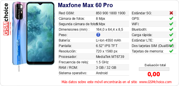 Datos del móvil Maxfone Max 60 Pro en tu página