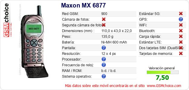 Datos del móvil Maxon MX 6877 en tu página