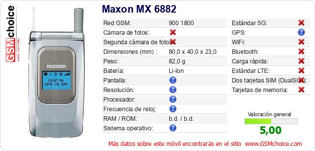 Datos del móvil Maxon MX 6882 en tu página