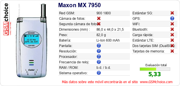 Datos del móvil Maxon MX 7950 en tu página