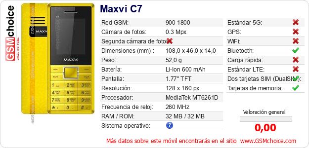 Datos del móvil Maxvi C7 en tu página